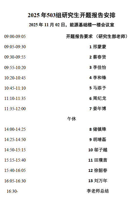 备注: 每人 25 分钟(15 分钟报告+10 分钟讨论)。 此次考核为差额考核,请各位同学认真准备, 严格遵守报告时间。